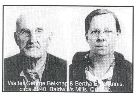 Walter Georges Belknap (WG) est né en 1864 et décédé en 1940 à 76 ans. Il est le petit cousin de Mitchell Belknap. Il s’est installé à Baldwin’s Mills vers 1880, à 16 ans, pour être l’apprenti du constructeur de maison John Fox (1838-1911). Ce dernier y construit sa maison qui existe toujours, au 1630 chemin May, et on peut supposer que WG l’a aidé.