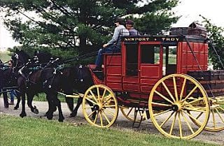 Comme moyen de transport avant les avions, les automobiles et les trains, ily eut les diligences qui ne sont plus que souvenirs aujourd’hui. Au début il a d’abord fallu penser à un réseau routier dont le premier au Québec remonte à 1663 entre Cap Rouge et Cap Tourmente (40 km). Entre 1709 et 1713 des ébauches ont été faites pour les routes de Lévis à Rivière du Loup, de Montréal à Québec etc… À cette époque, les véhicules pour transporter les gens étaient des calèches, des canioles et des cabriolets, et ne servaient que pour de courtes distanoes. Le déplacement de ces véhicules dépendait des chevaux. Les premiers chevaux sont arrivés d’Europe en 1647. On en comptait 156 en 1685 au Québec. Pour pouvoir se déplacer sur de plus longues distances est apparue la diligence. Nous nous en tiendrons aux diligences au Québec même si elles étaient très populaires aux États-Unis depuis l’époque des « cowboys ». Au tournant du XIX siècle, considérant que les messagers à cheval avaient trop de courrier, c’est à ce moment là que la diligence a fait son apparition. En 1792, on I’appelait aussi « stage », mot anglais. Le terme diligence apparaît quelques années plus tard mais le « stage » demeure quand rnême pour un bon nombre d’années. En plus du courrier, ce ne fut pas long que les diligences accueillent des voyageurs.